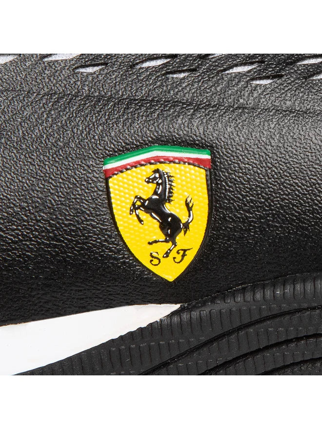 - Logotipo de Scuderia Ferrari y emblemas de Puma que le dan un toque distintivo y exclusivo, reflejando su conexión con el mundo de la velocidad.